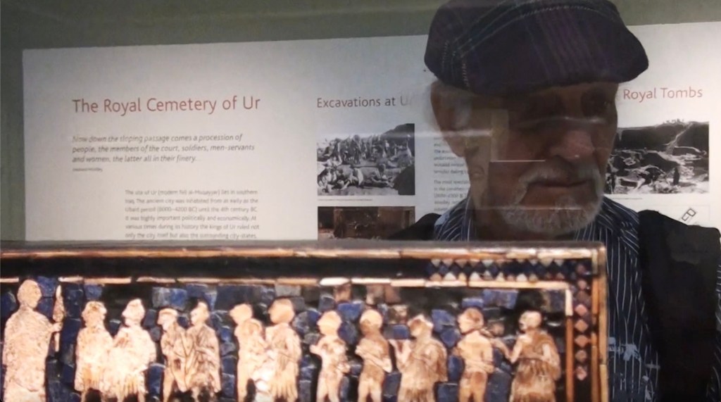 El conjunto de objetos de memoria que constituyen una identidad Iraquí está compuesto de artefactos de varios tipos, máscaras, pinturas, ánforas, íconos, frisos, estatuas, babel, muchos de ellos vistos en el museo, entre ellos la de una foto tomada a una imagen, una mujer-diosa, o notable, con la que abre la película. Las más atractivas son las tomas de archivo, excavaciones inglesas entre 1920 y 1930, que sitúan la historia de Irak en un pasado lejano tales como las del Palacio Ashurnasipal, de Nínive. Se puede ver el método de sacar tierra mediante canastos, de los cuales van a surgir las construcciones antiguas que se pueden ver reproducidas en libros de arte y de arqueología, y que hablan de la grandeza de la civilización árabe—persa, mesopotámica, babilónica. Enseguida de estas excavaciones es que un hombre lee el poema siguiente: